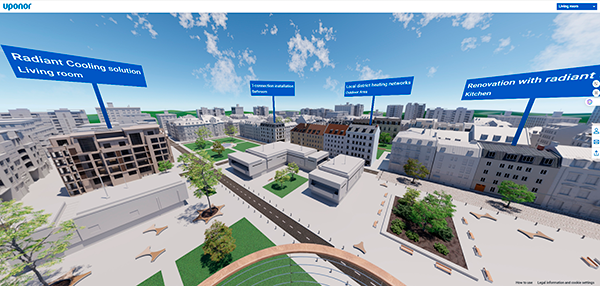 El showroom virtual de Uponor es un espacio online especialmente diseñado para mostrar cómo sus soluciones contribuyen a la construcción de entornos sostenibles y eficientes. Es una fuente ideal de inspiración y conocimiento para profesionales como ingenieros, arquitectos e instaladores invitándoles a explorar el mundo de los productos Uponor y proporcionándoles información y detalles adicionales con más de treinta puntos de contacto interactivos a lo largo de la sala de exposición virtual. Diseñada para facilitar su uso, la interfaz de usuario es igualmente accesible y funcional tanto en ordenadores como en dispositivos móviles.