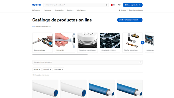 Uponor, que opera como GF Building Flow Solutions desde abril de 2024, ofrece a los profesionales del sector implicados en el diseño e instalación de sistemas de climatización y el transporte del agua una visión general de las soluciones disponibles en el mercado a través de las webs de las marcas específicas de cada país. La navegación principal ofrece una búsqueda por solución de edificio o producto, para que los usuarios puedan encontrar la solución adecuada para cada aplicación. Dentro de la selección por solución constructiva, se enumeran las distintas posibilidades, por ejemplo para calefacción y refrigeración con control de temperatura radiante o para instalación de agua potable, con un enlace a los respectivos productos en el catálogo on-line. La amplia selección de ejemplos de proyectos, con la posibilidad de buscar por tipo de edificio, producto, sistema y país, es una fuente de información e inspiración. Los datos sobre el proyecto pueden consultarse de un vistazo o descargarse como hoja de datos en PDF. La extensa área de servicios conduce a las soluciones y alternativas que ofrece la marca para sus públicos. Entre ellos se incluyen conjuntos de datos de productos, datos BIM y numerosos seminarios web y cursos de formación online sobre una amplia gama de temas relacionados con los servicios técnicos de construcción.