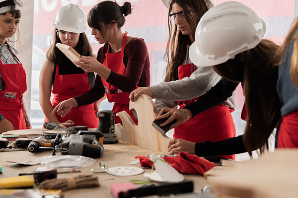 El protagonismo de esta jornada ha estado en manos de cuatro mujeres líderes en sus respectivos campos dentro del sector de la construcción, del bricolaje y reformas quienes han sido las encargadas de guiar a las participantes y compartir sus historias de éxito. Estas profesionales, que desafían los estereotipos tradicionales de la industria, son Isabel Obreo, carpintera especializada en muebles artesanales de madera y que ha guiado a las participantes en la creación de una tabla de madera, desde el diseño y corte, hasta el lijado, taladrado y acabado con cera o aceite; Raquel López, electricista con amplia trayectoria en el sector, que ha orientado a las alumnas en la creación de un circuito eléctrico básico que les permitirá encender una bombilla mediante una aplicación móvil; Sylvia Salas, especialista en bricolaje y decoración, y divulgadora en redes sociales y que ha realizado un taller creativo en el que las jóvenes han aprendido a colocar azulejos en bandejas o posavasos y Jennifer López, fontanera a tiempo completo que aprendió los trucos de esta profesión desde los quince años, y que ha guiado a las participantes en la instalación de un grifo de lavadora en un tubo de cobre. A su vez, cada una de ellas ha estado acompañada de una mujer del equipo de Brico Depôt, quien ha actuado como soporte y guía aportando su experiencia en el sector.