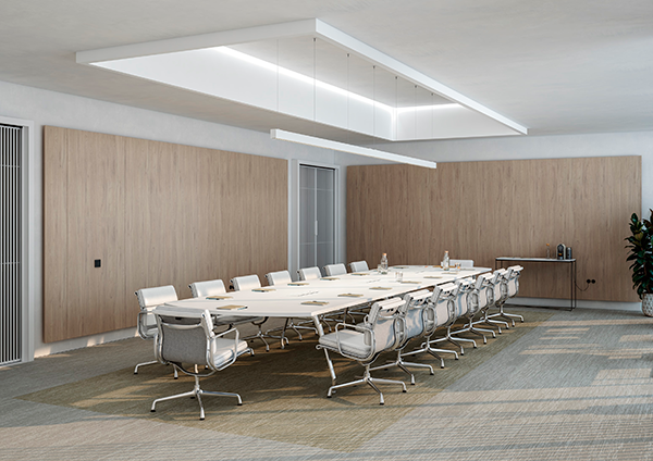 Bajo esta nueva marca, ambas compañías presentan su primer producto: E-panel, un sistema modular de paneles electrificados decorativos y funcionales que fusionan la mejor madera técnica de Finsa con la avanzada tecnología de Simon, dando vida a espacios únicos y funcionales.