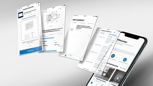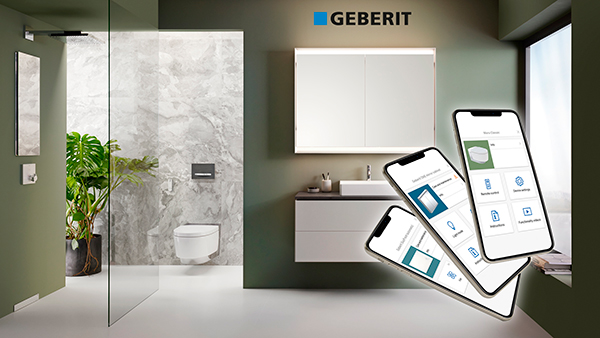 Las apps de Geberit, disponibles para IOS y Android, facilitan el trabajo diario al profesional de la instalación o sirven para accionar los elementos inteligentes del baño al usuario final