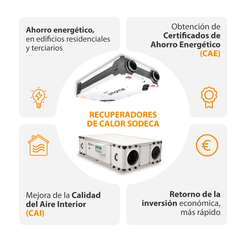 En su compromiso con la sostenibilidad y la eficiencia energética, SODECA fabrica recuperadores de calor tanto para viviendas como para edificios terciarios de gran aforo que incorporan este tipo de intercambiadores, lo que contribuye a aumentar el ahorro energético.