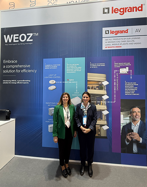 Se trata de una colaboración en la que se integran sistemas de ambos fabricantes en una innovadora solución para la administración inteligente de edificios o BMS (Building Management System) denominada por Legrand como WEOZTM. Este sistema permite recopilar datos relevantes sobre el consumo de energía en los distintos sistemas del edificio, como climatización (calefacción/refrigeración), iluminación y ventilación. Gracias a estos datos, junto con los de ocupación del edificio, se pueden ajustar automáticamente los parámetros de esos sistemas para optimizar y ajustar, entre otros, la climatización, la iluminación y la calidad del aire, garantizando el confort y el ahorro de energía en tiempo real.