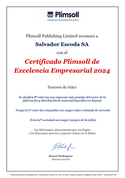 Según la última edición del informe sectorial Plimsoll "Fabricantes y distribuidores de material frigorífico (España)", Salvador Escoda ha logrado posicionarse entre las compañías más destacadas del sector, alcanzando los siguientes hitos: