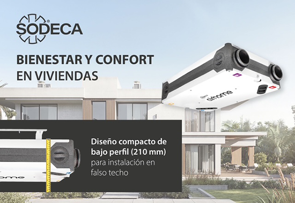 De esta forma, la integración de los recuperadores de calor AIRHOME de SODECA en las viviendas los convierte en una solución de alta eficiencia energética capaz de reducir la dependencia de los sistemas de climatización y refrigeración convencionales. Al recuperar y reutilizar la energía térmica del aire expulsado, estos equipos permiten mantener una temperatura interior confortable con un menor consumo energético.