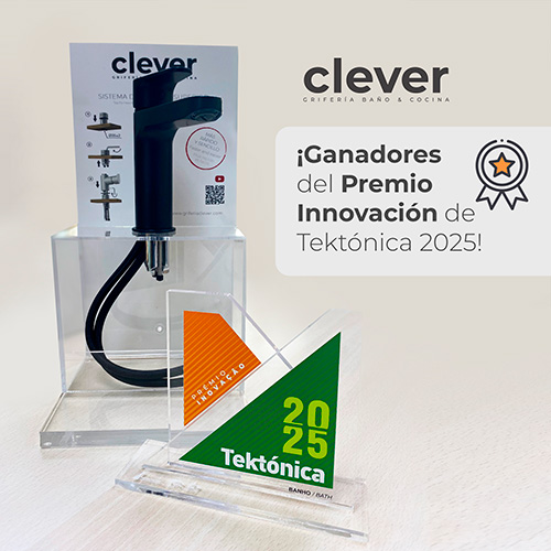 En el marco de este evento, grifería CLEVER ha ganado el PREMIO INNOVACION 2025 con su sistema TOP FIX, el nuevo sistema de fijación superior: instalación más fácil y rápida que la instalación tradicional en el que se ahorra tiempo.