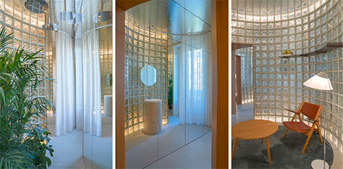 Inspirado en la fluidez y adaptabilidad del agua, este cuarto de baño, creado por Zooco para Geberit, marca líder en soluciones sanitarias innovadoras y sistemas para el baño, utiliza geometrías puras para evocar el movimiento y la transformación del líquido. Gracias a la iluminación de la firma se generan reflejos y sombras que amplifican la sensación de fluidez, reforzando la interacción entre la luz y el agua.