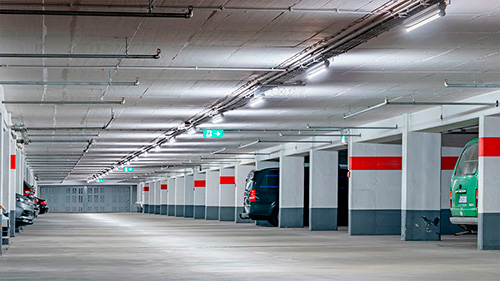 Por norma general, la iluminación de un aparcamiento debe ser nítida y uniforme de acuerdo con el marco normativo marcado por la DIN EN 12464-2 en el caso de instalaciones de exterior; o por la UNE EN 12464-1 para aquellos espacios interiores. La iluminación de aparcamientos aspira también a ser sostenible para ser una aliada contra la obsolescencia, reducir costes de mantenimiento y aumentar la rentabilidad.