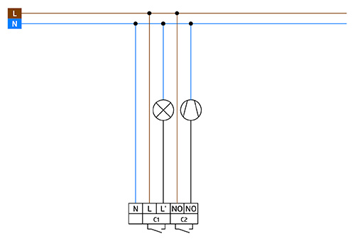 El sensor PD3N-2C-FT actúa como un elemento de control automático que al detectar movimiento habilita o interrumpe el paso de corriente hacia dos circuitos distintos: uno destinado al alumbrado y otro al accionamiento de la electroválvula del agua. Ambos pueden configurarse con tiempos de apagado independientes lo que permite que, por ejemplo, la iluminación se mantenga encendida por un periodo más prolongado que el flujo del agua.