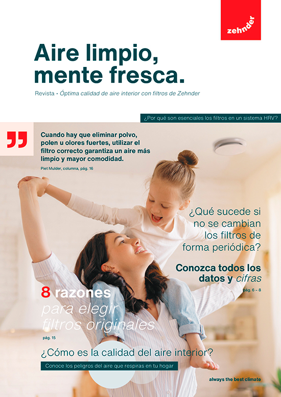 Zehnder lanza una nueva publicación especializada que aborda con rigor y claridad los retos de la calidad del aire interior. La revista ofrece datos clave, consejos prácticos y experiencias reales para entender cómo influye el filtrado en la salud y el confort