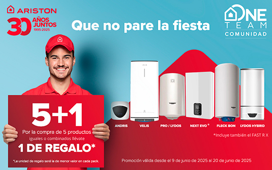 Ariston España continúa celebrando su 30 aniversario con una nueva acción pensada exclusivamente para instaladores: la promoción “5+1 en ACS: ¡Que no pare la fiesta!”, válida entre el 9 y el 20 de junio de 2025. Una oportunidad única para los profesionales del sector que forman parte del Club de fidelización MyTeam