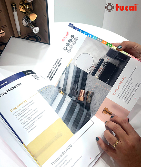 Otra de las mejoras aplicadas en esta nueva edición ha sido la renovación del diseño. Este nuevo catálogo cuenta con una imagen más limpia y actualizada donde han querido demostrar que el producto Tucai está en la vida de las personas, además de hacer también un cambio en la disposición de los productos, presentándolos por tipo y aplicación. Cada una de estas categorías está en su propia pestaña. Y además, en la parte de flexibles, también se han incluido 2 índices, uno por DN y otro ordenado por caudal. Con todo esto, Tucai quiere conseguir que la búsqueda del producto deseado sea todavía más sencilla para el distribuidor.