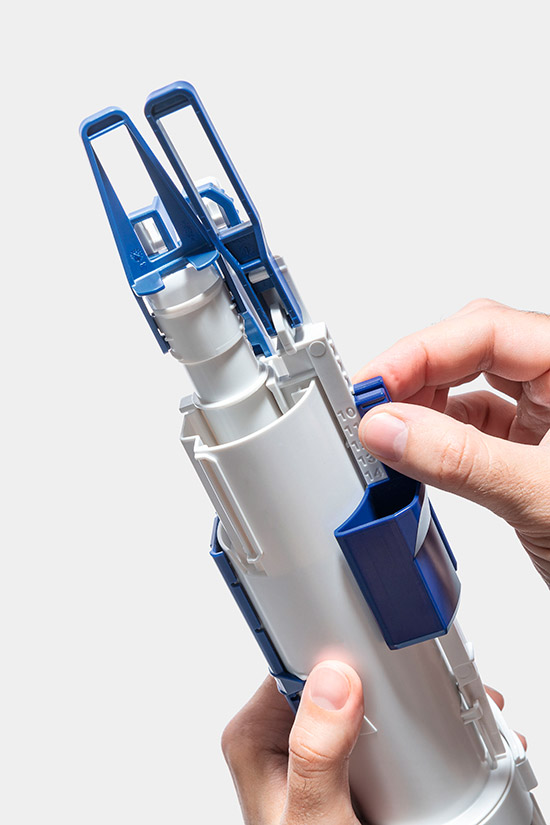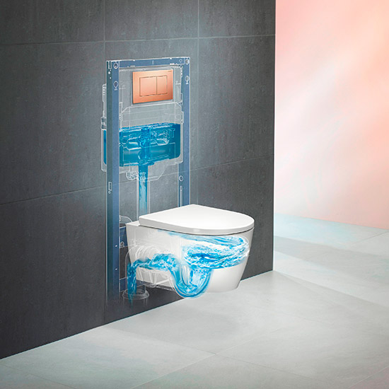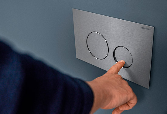 Mientras que, con los inodoros tradicionales, cada vez que “tiramos de la cadena” fluyen una media de seis a nueve litros de agua al sistema de alcantarillado, con La Solución Completa Geberit para el inodoro, una sola descarga de 2 o 4 litros basta para que la taza del WC quede limpia de residuos.
