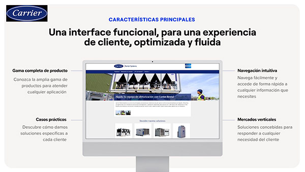 La información técnica detallada, de una amplia gama de equipos, permite al usuario comparar y encontrar la unidad que mejor se ajuste a su instalación y equipos y servicios que pueden complementarla y mejorar su negocio. El sitio incorpora una visión completa de los servicios que ofrece Carrier en su modalidad de alquiler: análisis y propuesta personalizada, entrega, instalación y puesta en marcha, mantenimiento y asistencia técnica 24/7 durante todo el periodo de uso. Todo ello con el objetivo de garantizar una respuesta rápida, fiable y adaptada a los retos de cada cliente.