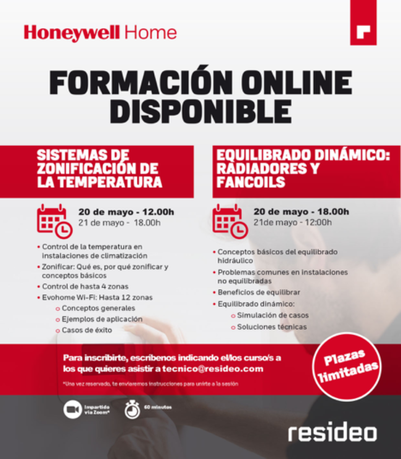 Siguiendo la linea de estrecha colaboración con los instaladores de climatización y calefacción, Resideo ofrece durante este mes de mayo, dos seminarios de formación totalmente gratuitos