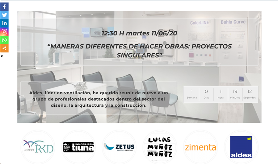 Aldes organiza su segunda jornada técnica virtual en la que se debatirá acerca de “maneras diferentes de hacer obras: proyectos singulares” jueves 11 de junio a las 12.30 horas
