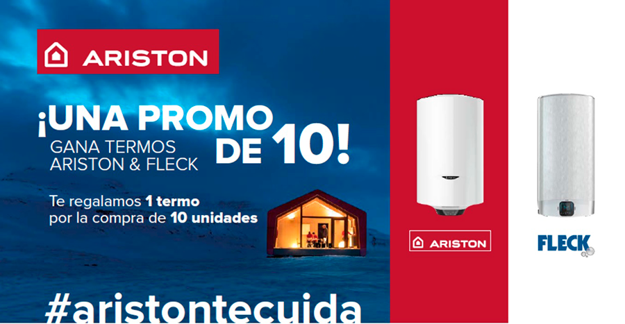 Ariston, experto mundial en soluciones de calefacción y agua caliente sanitaria, lanza esta promoción especial para instaladores en su red de distribución, que ofrece la posibilidad de ganar 1 termo Ariston o Fleck con la compra de 10 termos eléctricos en el mismo punto de venta.
