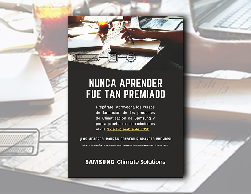 Samsung Climate Solutions, en su apuesta de seguir enriqueciendo las relaciones con sus clientes y su canal de distribución, quiere premiar a los asistentes de las formaciones, realizadas durante los últimos meses, con importantes regalos. En concreto, y para poner a prueba los conocimientos adquiridos, deberán inscribirse y realizar un examen resumen, el próximo 3 de diciembre, de los cursos recibidos online para el sector de climatización, cursos realizados y enfocados a los profesionales comerciales y técnicos de este ámbito. En esta pasada edición, cerca de 600 profesionales se inscribieron en diferentes cursos online impartidos por los expertos de climatización de Samsung Climate Solutions.