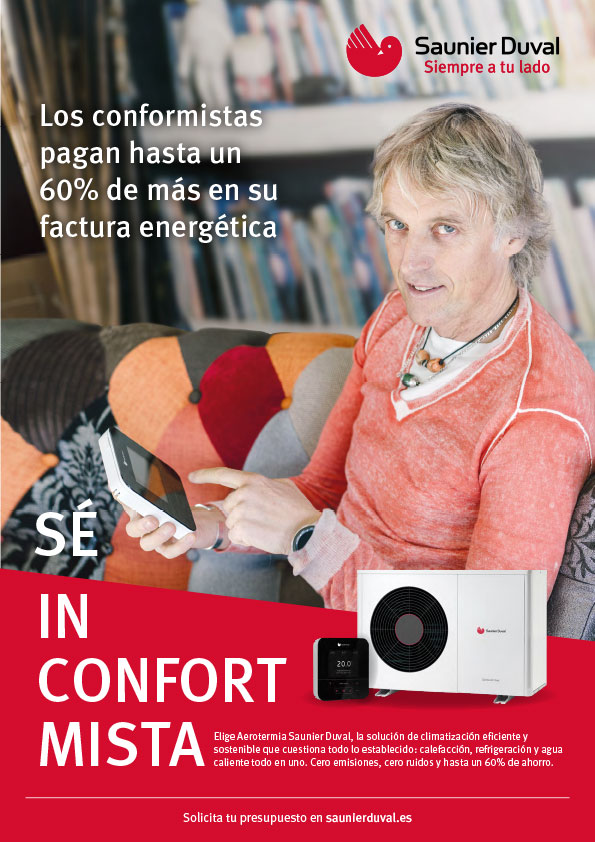 Y es que, ¿por qué conformarse pudiendo elegir la solución de climatización más avanzada, eficiente y sostenible del mercado? Esa es la idea que está detrás de esta nueva campaña de comunicación con la que, bajo el concepto “Sé inconformista”, Saunier Duval quiere poner en valor los beneficios de elegir su nueva generación de Sistemas de aerotermia Genia: Ahorro de hasta un 60% en la factura energética, máximo respeto al medio ambiente y calefacción, agua caliente y refrigeración todo en uno.