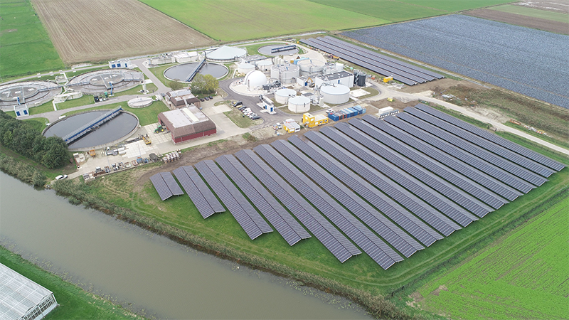 El tercer proyecto fotovoltaico para la gestora holandesa, suministra energía verde a la planta de tratamiento de aguas residuales de Sleeuwijk