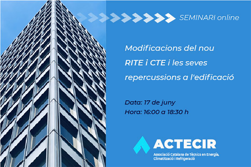 Actecir organiza un Seminario sobre Modificaciones del nuevo RITE y CTE y su repercusión en la edificación el próximo 17 de Junio