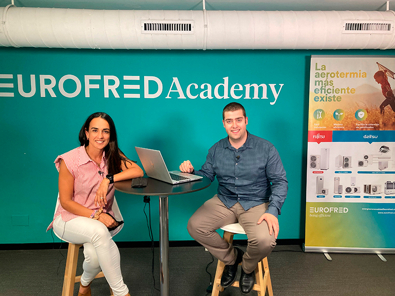 Durante la sesión, los expertos de Eurofred Marta Tomás, Renewable Energy Marketing Director y Mario Sancho, National KeyAccount Manager Renewable Energy han analizado el presente y el futuro de las energías renovables en el sector de la climatización y temáticas como los edificios de consumo casi nulo, las novedades derivadas de los nuevos CTE 2019 y RITE 178/2021 y las bombas de calor (BdC) aerotérmicas. Asimismo, los asistentes han podido conocer los beneficios de las soluciones aerotérmicas más destacadas de la compañía.
