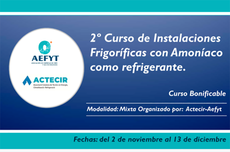 No te pierdas del 2 de noviembre al 13 de diciembre 2021 el 2º Curso de Instalaciones Frigoríficas con Amoníaco como refrigerante