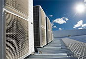 En verano, una bomba de calor aerotérmica enfría agua, alimentando posteriormente a los distintos sistemas de distribución: suelo radiante/refrescante, unidades de tratamiento de aire, fan coils, etc.