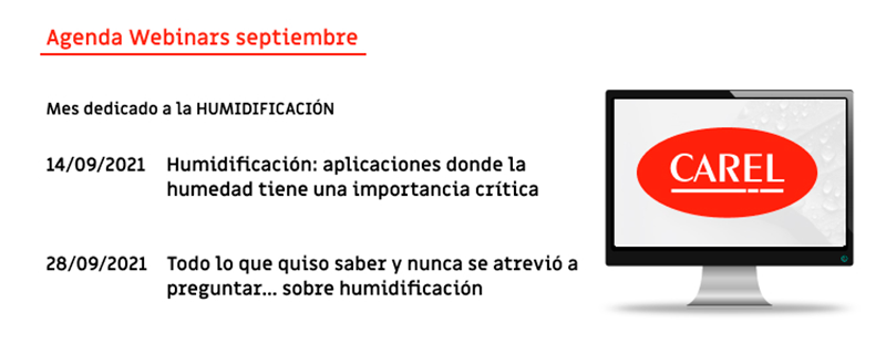 Por estos motivos ¡volvemos en septiembre! Con un nuevo formato, en el que salvo excepciones celebraremos dos webinars mensuales sobre un mismo tema, uno más comercial y otro más práctico, empezamos dedicando septiembre a la humidificación, una variable a la que en ocasiones no se le ha dado la importancia que tiene, pero que a raíz de la pandemia vivida ha dejado claro su papel para evitar la propagación de los virus y la importancia de mantenerla en un rango entre 40% y 60%.