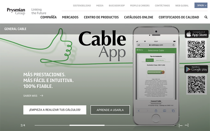 • Todas las soluciones digitales, como Cable App, la aplicación para la selección y cálculo eficiente del cable más adecuado para cada instalación, en Baja y Media tensión.