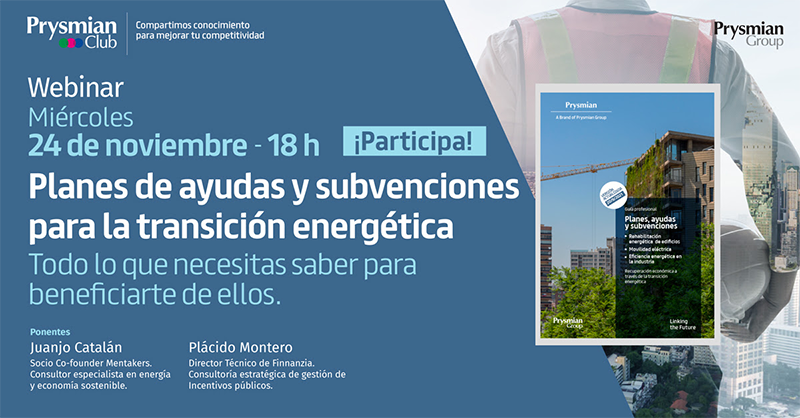 En este webinar Prysmian Group da soporte al sector analizando las oportunidades de los Planes de Ayudas y Subvenciones para la Transición Energética y las claves de cómo pueden beneficiarse de ellos los instaladores e ingenierías.
