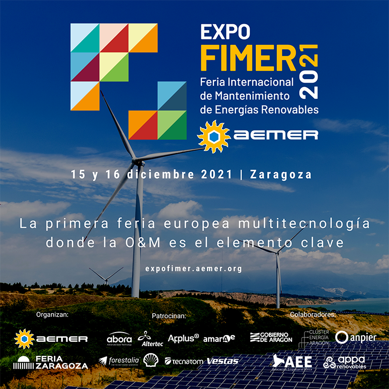 El evento, organizado de forma conjunta por AEMER (Asociación de Empresas de Mantenimiento de Energías Renovables) y Feria de Zaragoza, se convierte de este modo en una referencia internacional dentro de la O&M de instalaciones renovables, al contar también con el apoyo de las principales asociaciones del sector —ANPIER, APPA y AEE—, y el patrocinio de empresas como Abora, Altertec, Amara-e, Applus+, Forestalia, Shell, Tecnatom o Vestas.