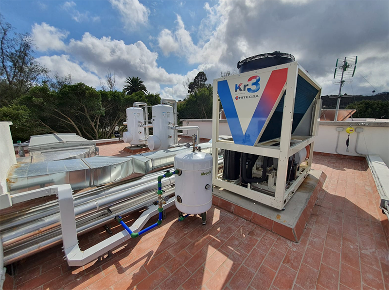 Las Bombas de Calor Aire-Agua HITECSA Kr3B, con refrigerante R32, climatizan el Centro Sociosanitario de Mayores el Sabinal en Tarifa Baja, Las Palmas de Gran Canaria.