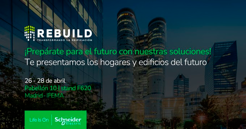 Rebuild, que se ha convertido en una cita de referencia para los profesionales nacionales e internacionales del sector. Esta edición, de la que Schneider Electric es GlobalPartner, abordará cómo construir edificios pensando en el bienestar de las personas, así como en la descarbonización de la construcción y la rehabilitación de viviendas con los fondos NextGen, entre otros temas.