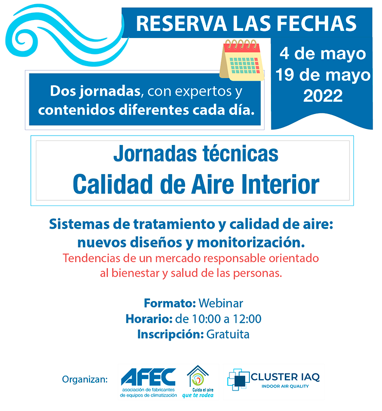 AFEC y el CLUSTER IAQ celebrarán los próximos 4 y 19 de mayo de 2022, en formato virtual, dos jornadas técnicas
