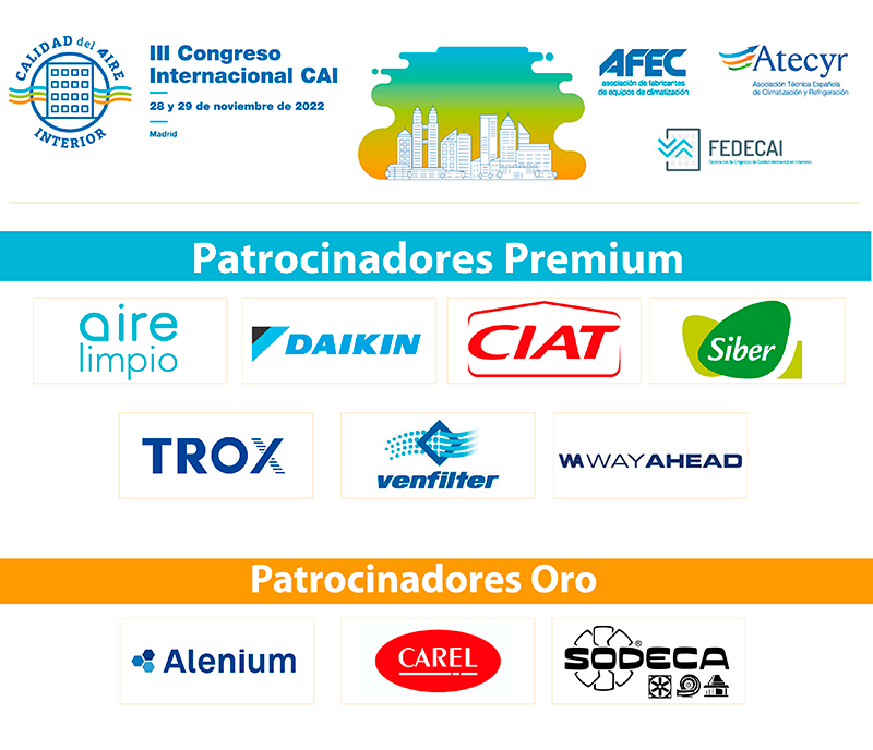 Patrocinadores premium: AIRE LIMPIO, AIRZONE, CIAT, DAIKIN, SIBER, TROX, VENFILTER, W WAY AHEAD