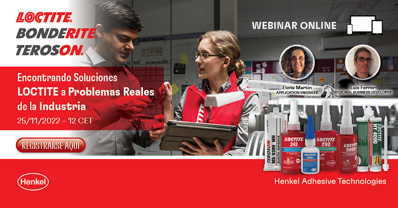 Para mostrar estos y más ejemplos, el viernes 25 de noviembre a las 12:00h horas LOCTITE organiza el webinar: “Encontrando soluciones LOCTITE a problemas reales de la industria”. Durante el Webinar, se mostrarán más casos históricos reales en los que LOCTITE se ha visto involucrado en las diferentes industrias y finalmente se abrirá turno de preguntas para cuestiones y dudas más personalizadas. Además, los asistentes podrán llevarse una muestra gratuita de LOCTITE 402, la última innovación de la marca, un adhesivo instantáneo que proporciona alta resistencia térmica y durabilidad en una amplia gama de sustratos.