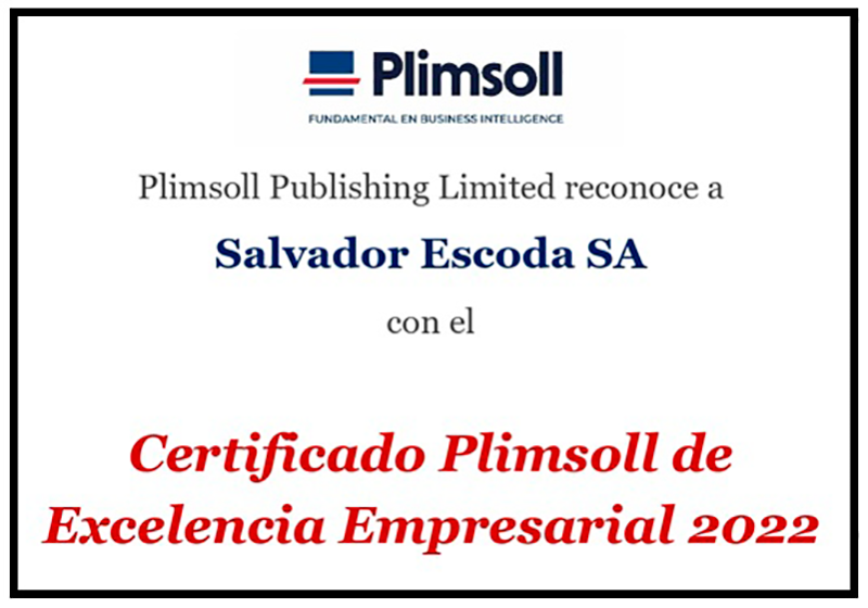Certificado oficial a la Excelencia Empresarial 2022: https://www.salvadorescoda.com/misc/Certificado_Excelencia_Empresarial_2022_SALVADOR_ESCODA_SA.pdf