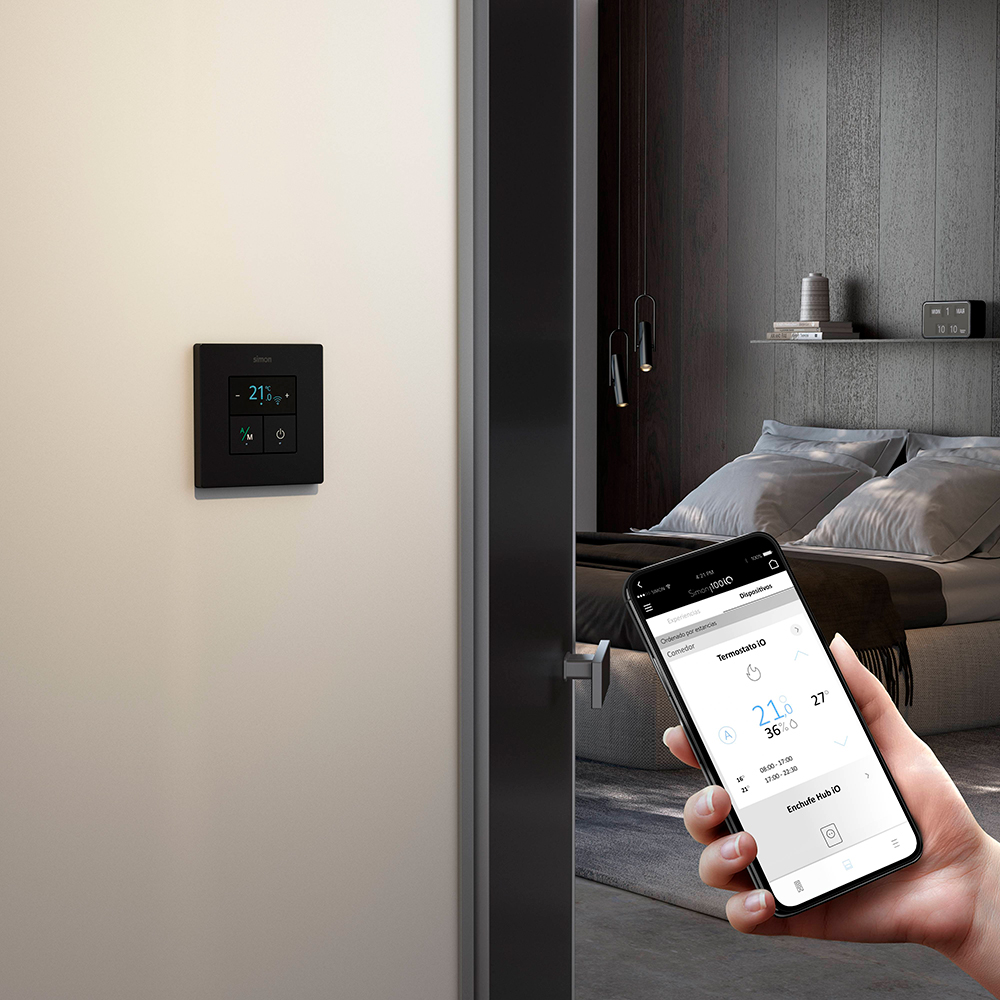 Gracias a la app Simon iO, el usuario podrá controlar lo que sucede en su hogar fácilmente. Por ejemplo, podrá conectar su hogar al sistema de calefacción para controlar la temperatura con la app. También configurar experiencias para automatizar acciones cotidianas como levantar o bajar persianas, o encender y apagar luces. Es, además, compatible con los asistentes de voz de Google y Amazon.