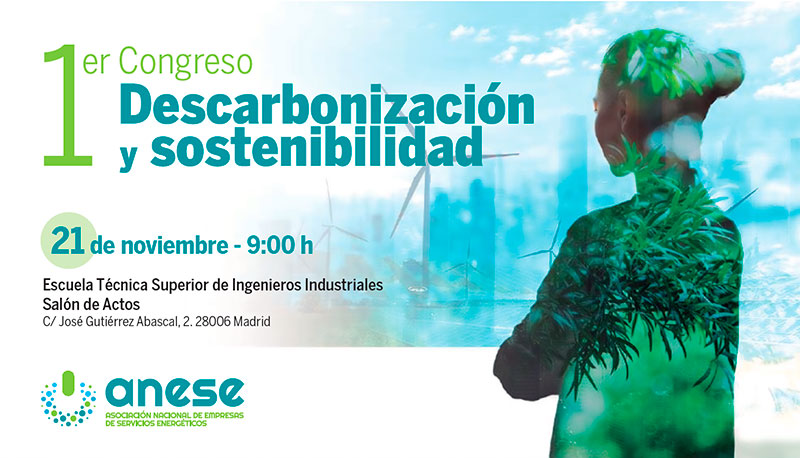 ANESE (Asociación Nacional de Empresas de Servicios Energéticos) organiza el 1er Congreso de “Descarbonización y sostenibilidad”, que tendrá lugar el día 21 de noviembre, en la Escuela Técnica Superior de Ingenieros Industriales de Madrid (Calle José Gutiérrez Abascal, 2. Madrid).