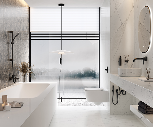 Ahora la Serie Koral también está disponible en acabado negro mate de alta calidad. Un acabado atractivo y sofisticado que da a esta colección una elegancia excepcional y que transmite calma y pureza.