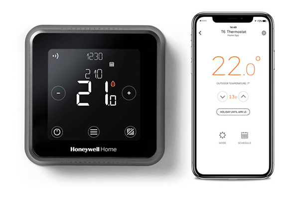 El termostato programable inteligente Honeywell Home T6 ofrece a los usuarios control remoto de su calefacción. Desde un smartphone o tablet, los usuarios pueden regular la temperatura de su hogar con un solo clic. Gracias al programa de geolocalización, el termostato puede detectar cuando los residentes se acercan o salen de casa, y luego se enciende o apaga automáticamente. El termostato T6 también permite configurar el programa de calefacción mediante un calendario preprogramado. Esta tecnología permite disfrutar del máximo confort teniendo el hogar calentado en el momento adecuado. También puede reducir el consumo innecesario de energía cuando los ocupantes están ausentes.