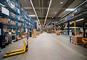 A la hora de iluminar zonas especialmente amplias, como centros logísticos y de producción, LEDVANCE dispone de la gama Trusys Flex que se caracteriza por su versatilidad de áreas de aplicación gracias a sus ópticas especiales asimétricas bañadoras, su grado de protección IP40 y pueden montar los drivers encendido-apagado y las versiones IoT-ready DALI-2.