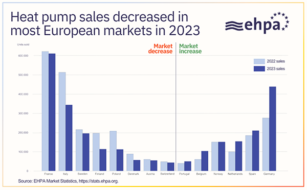 *Las ventas de bombas de calor disminuyen en la mayoría de los mercados europeos en 2023