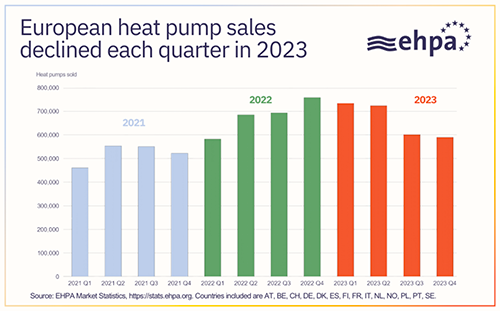 *Las ventas europeas de bombas de calor disminuyeron cada trimestre en 2023