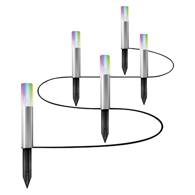 LEDVANCE incluyen de igual manera balizas decorativas ampliables dentro de su catálogo bajo el nombre de SMART+ WIFI GARDEN POLE. Esta solución fabricada en acero inoxidable permite instalar hasta 8 puntos de luz, todos ellos con una temperatura de color de 3.000K, con función RGB y grado de protección IP65.