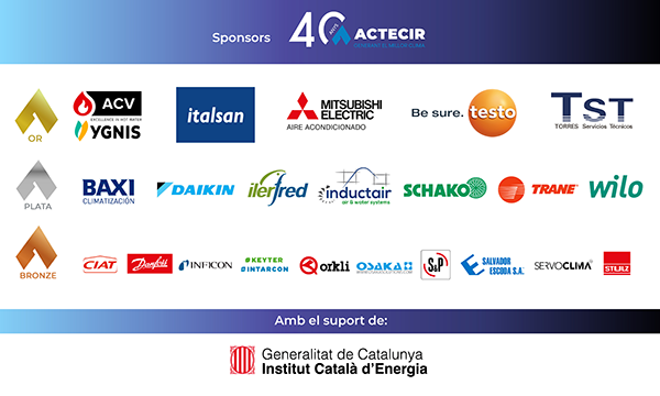 La asociación se enorgullece de tener el apoyo incondicional de todos los patrocinadores, en categoría ORO: ACV-YGNIS, ITALSAN, MITSUBISHI ELCTRIC, TESTO y TST. En categoría PLATA: BAXI, DAIKIN, ILERFRED, INDUCTAIR, SCHAKO, TRANE y WILO. En categoría BRONCE: CIAT, DANFOSS, INFICON, KEYTER-INTARCON, ORKLI, OSAKA, S&P, SALVADOR ESCODA y STULZ. Y con la colaboración y el apoyo de INSTITUT CATALÀ D’ENERGIA.