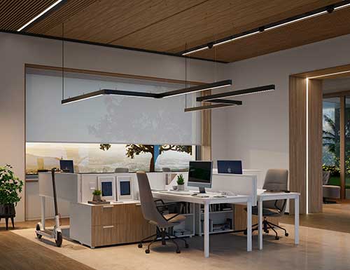 Dentro de esta unidad de negocio, la compañía dispone de una amplia gama de categorías: sistemas de iluminación, luminarias de pared y techo, lineales, techo modulares e industriales. En línea con este compromiso, uno de los últimos lanzamientos dentro de la gama downlights es Simon 712. Esta luminaria ha sido diseñada para adaptarse a cualquier entorno gracias a su estética minimalista y funcional. Presenta dos opciones de temperatura de color y accesorios low UGR para controlar los deslumbramientos. Además, su versión empotrable ofrece una total integración en la pared o el techo gracias al sistema X-LESS e incorpora la opción orientable de hasta 45° lo que permite crear un efecto de luz wall washer. Asimismo, amplía su gama de referencias del sistema lineal Simon 860. Esta serie configurable de luminarias ahora incluye módulos biodinámicos con tres tipos de difusores: translúcido, microprisma y bajo UGR. Las posibilidades de composición son ilimitadas cuando se combinan con accesorios que permiten la unión entre tramos con opciones de suspensión, adosamiento o integración en falso techo creando trazos en forma de I, Z, L, U y S. En esta segunda fase, se han añadido dos nuevos accesorios que permiten crear configuraciones en forma de T o X, brindando aún más flexibilidad en el diseño de iluminación. También se ha incorporado la opción modular que proporciona tanto luz directa como indirecta, ofreciendo una solución completa y adaptable a cualquier necesidad lumínica.