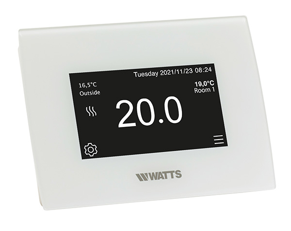 En concreto, el nuevo sistema inalámbrico utiliza termostatos de radiofrecuencia Watts Serie 03 RF para controlar la temperatura de habitaciones individuales y contactos eléctricos remotos. Además, gracias al módulo WiFi integrado, la unidad central permite un control remoto completo del sistema a través de la app dedicada "Watts Vision" (para iOS y Android) o cualquier navegador desde un PC o tableta, y es compatible con los sistemas de comandos de voz Google Home y Amazon Alexa. Además de la termorregulación de los sistemas hidráulicos y eléctricos de climatización por suelo radiante y/o radiadores, la unidad central también puede gestionar y supervisar todos los parámetros de control de su hogar, como luces, dispositivos eléctricos y sensores de detección de fugas de agua.