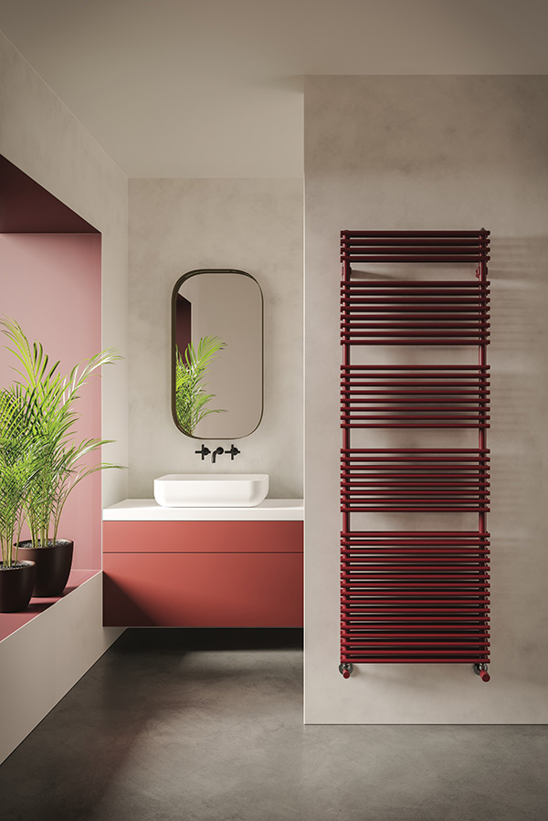 FLAUTO, disponible también en versión eléctrica y Wi-Fi, se distingue por sus formas suaves que realzan sus dimensiones y perfiles, convirtiéndose en una opción extremadamente funcional y versátil. Este radiador toallero no solo destaca por su diseño, sino también por su eficiencia. Sus altas potencias están perfectamente adaptadas para instalaciones de baja temperatura, como bombas de calor y calderas de condensación, garantizando un calor uniforme y constante en toda la habitación.